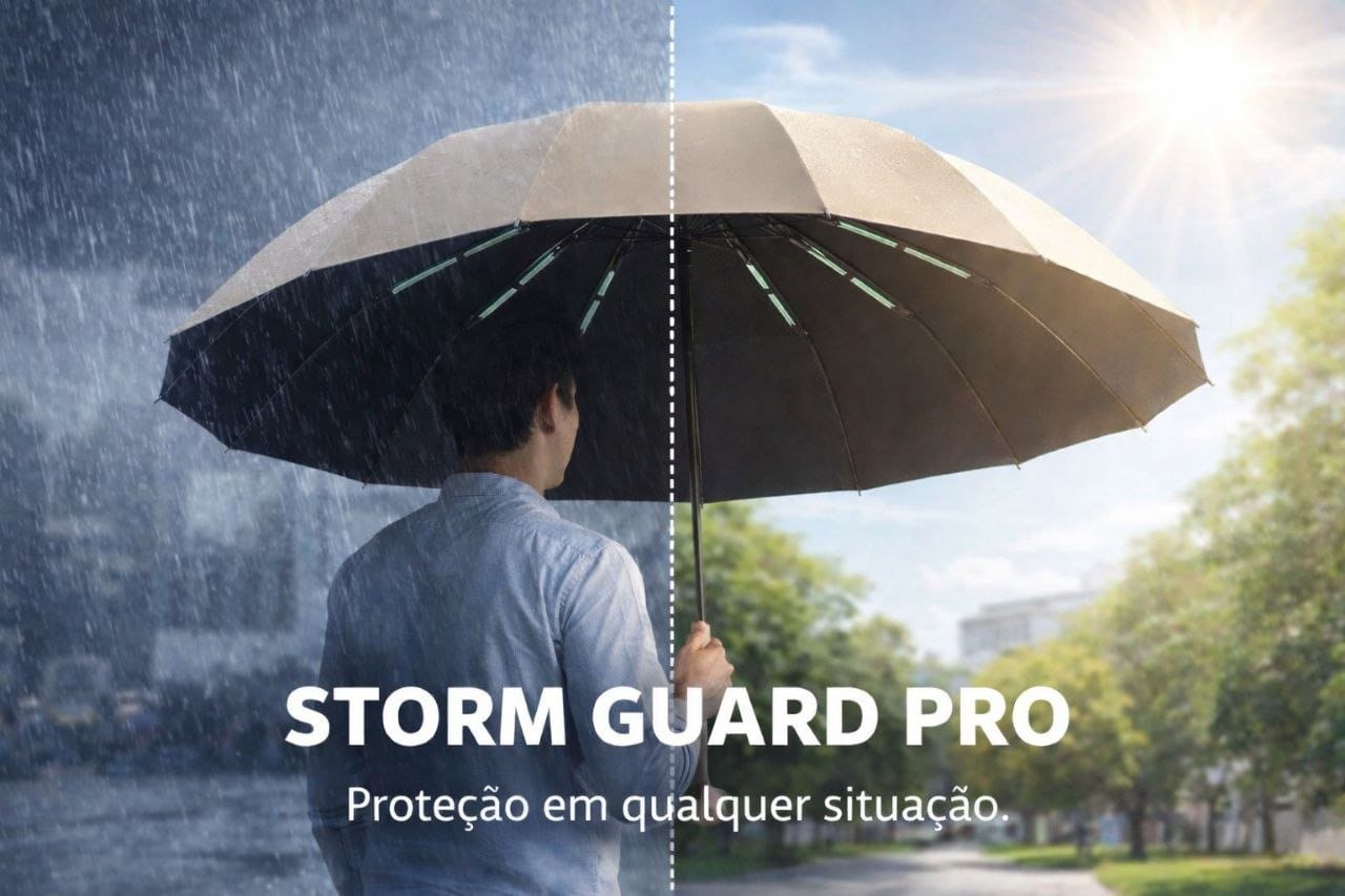O StormGuard Pro – Guarda-Chuva Automático Anti-Vento com Proteção UV foi criado para enfrentar todas as condições climáticas. Ele protege você da chuva intensa, das ventanias e dos raios solares fortes, tudo em um único produto robusto e elegante.