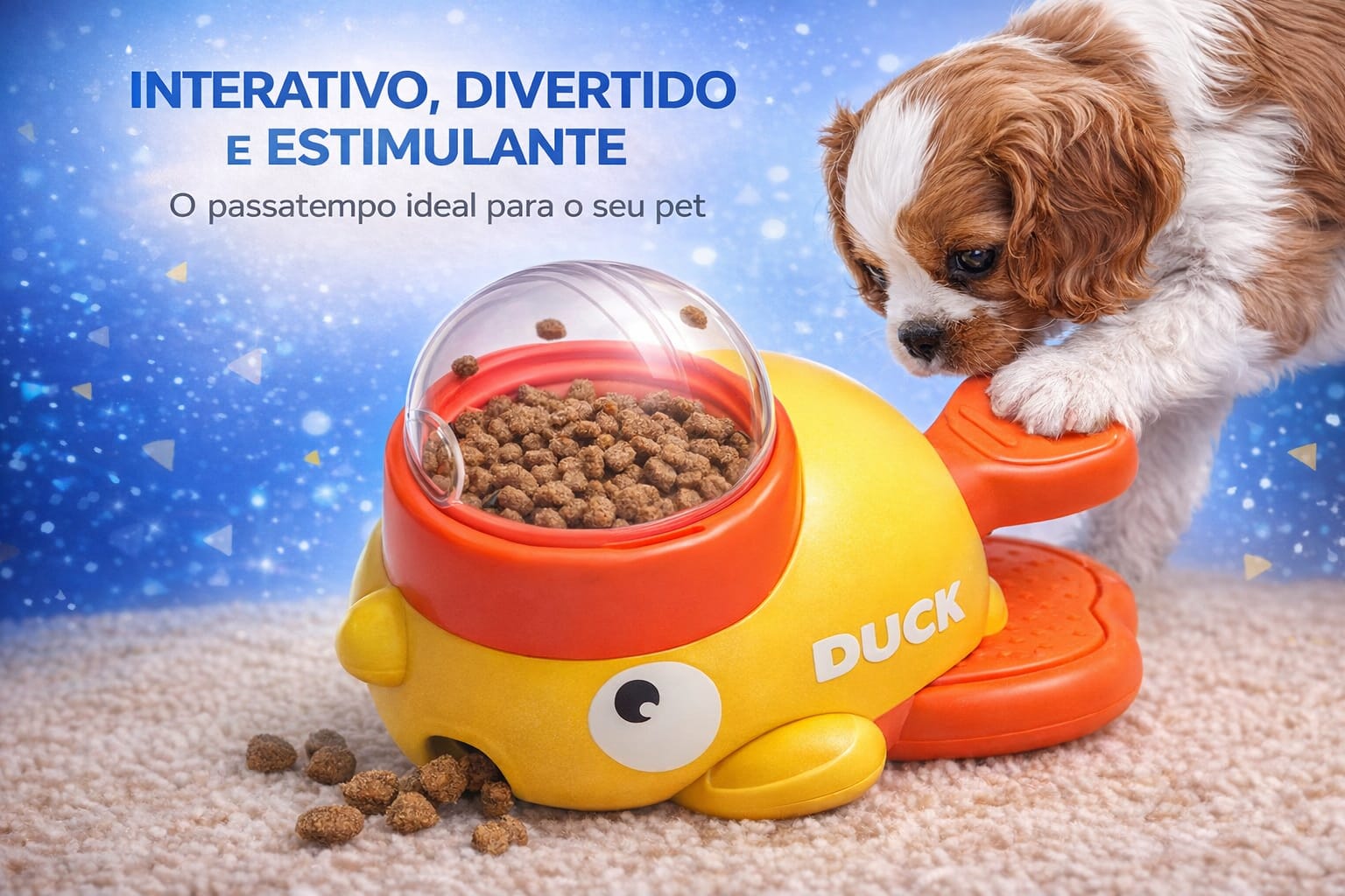 O SnackDuck Jeito Pet – Brinquedo Interativo Dispensador de Alimentos transforma petiscos em um jogo envolvente. Seu pet precisa pressionar, interagir e pensar para ganhar a recompensa, gastando energia mental, reduzindo ansiedade e se sentindo verdadeiramente estimulado.