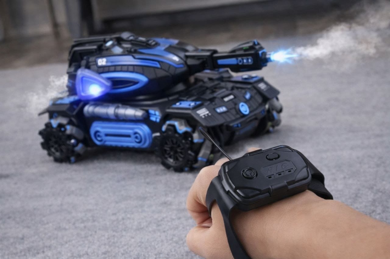 Sinta a emoção de comandar cada movimento com precisão absoluta, seja pelo controle remoto tradicional ou pelo inovador controle por gestos no pulso. Cada comando vira ação instantânea, colocando o poder literalmente nas suas mãos.
