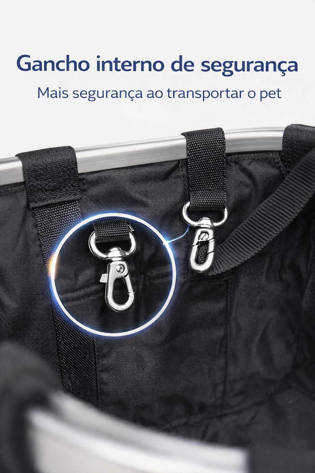 O gancho interno mantém seu pet seguro durante todo o trajeto, evitando pulos ou movimentos bruscos. Você pedala tranquilo sabendo que ele está protegido e confortável.