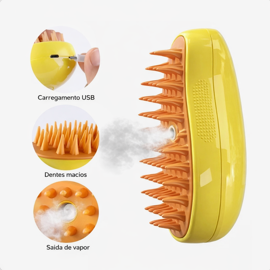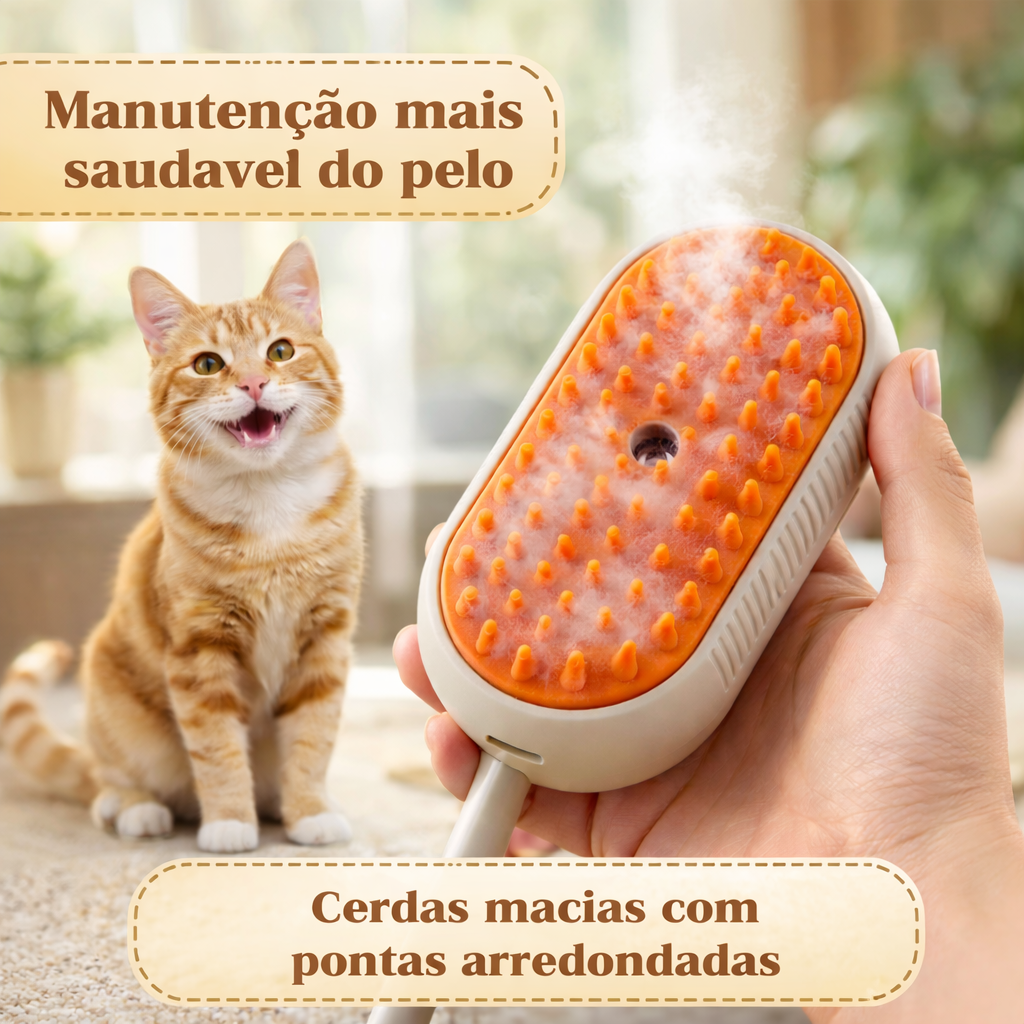 O vapor ajuda a soltar os fios emaranhados e reduz a eletricidade estática, tornando a escovação mais suave e segura, sem machucar ou irritar a pele do seu animal.