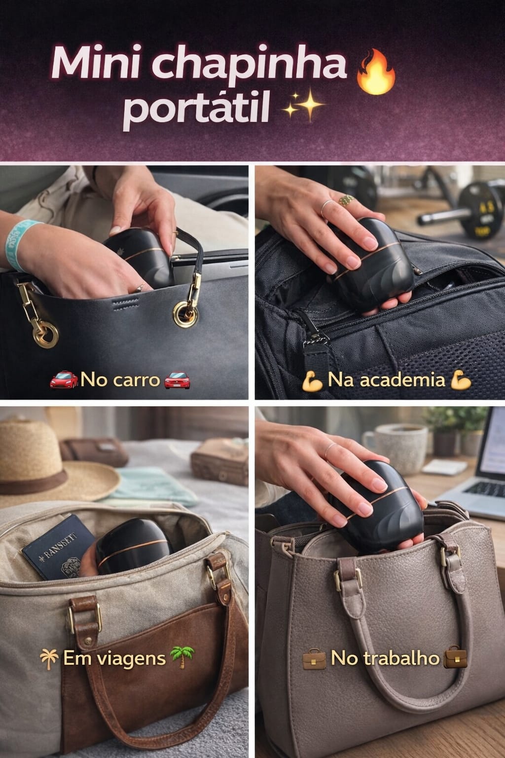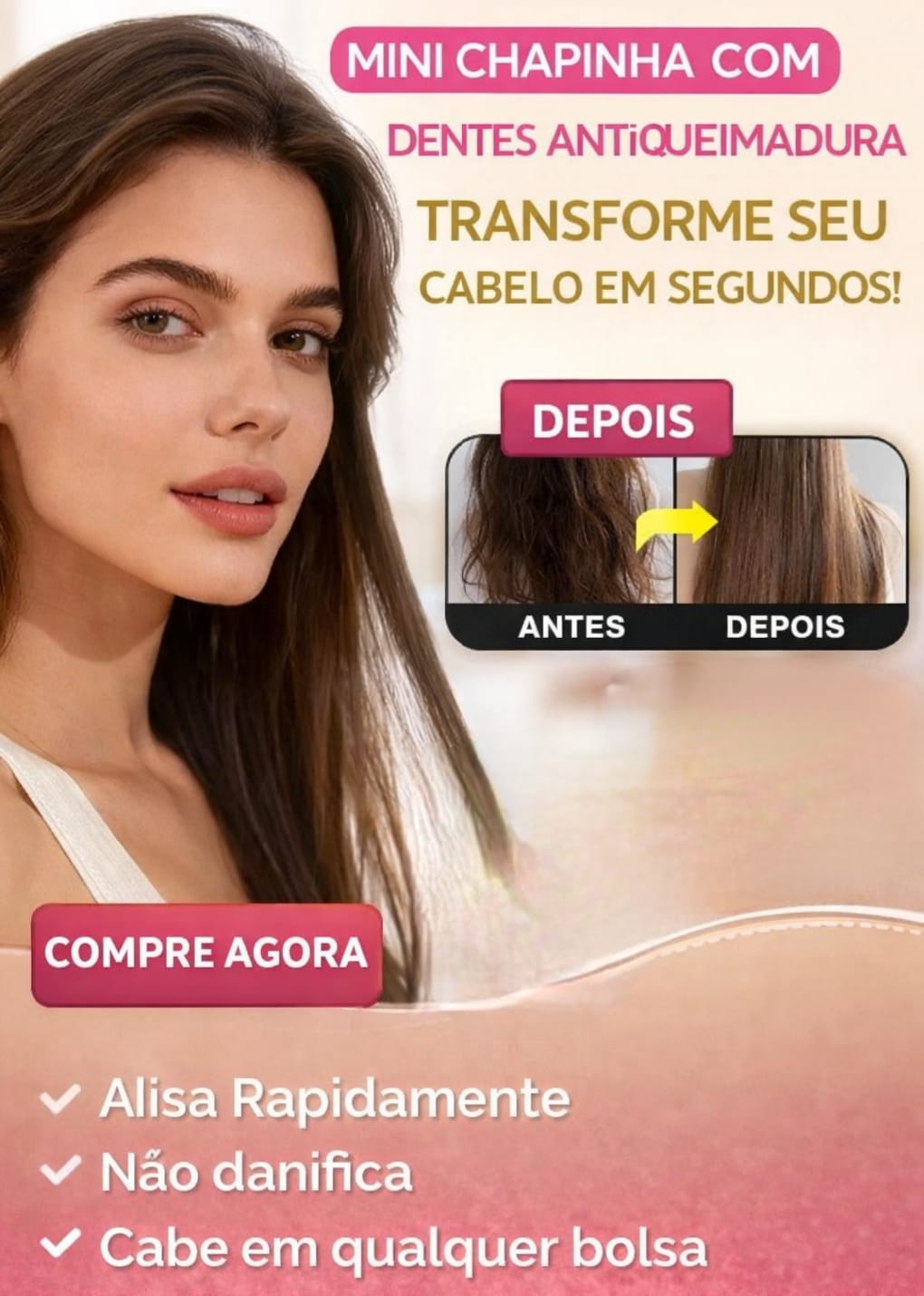 A Glambrush é a mini chapinha portátil que salva seu visual em minutos, onde você estiver.