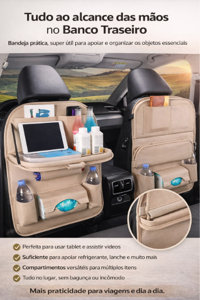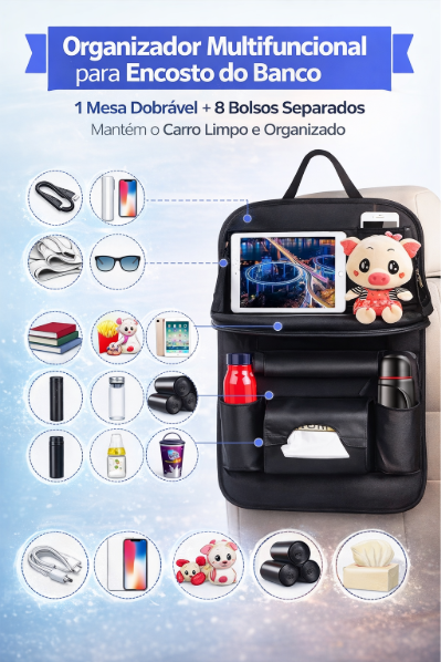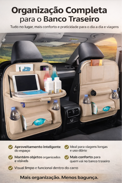 O Organiza Carro Tudo Certo transforma o banco traseiro em um espaço inteligente, organizado e funcional. Ideal para viagens, trabalho, famílias com crianças ou quem simplesmente não aguenta mais bagunça dentro do carro.