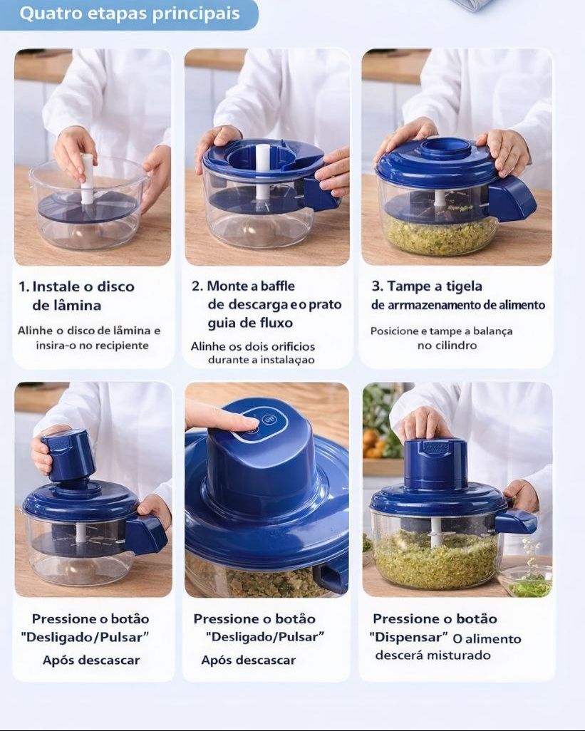 Com funcionamento de um toque, qualquer pessoa consegue utilizar o PeelFast Pro sem dificuldade. Basta colocar o alimento, pressionar o botão e deixar a máquina fazer todo o trabalho por você.