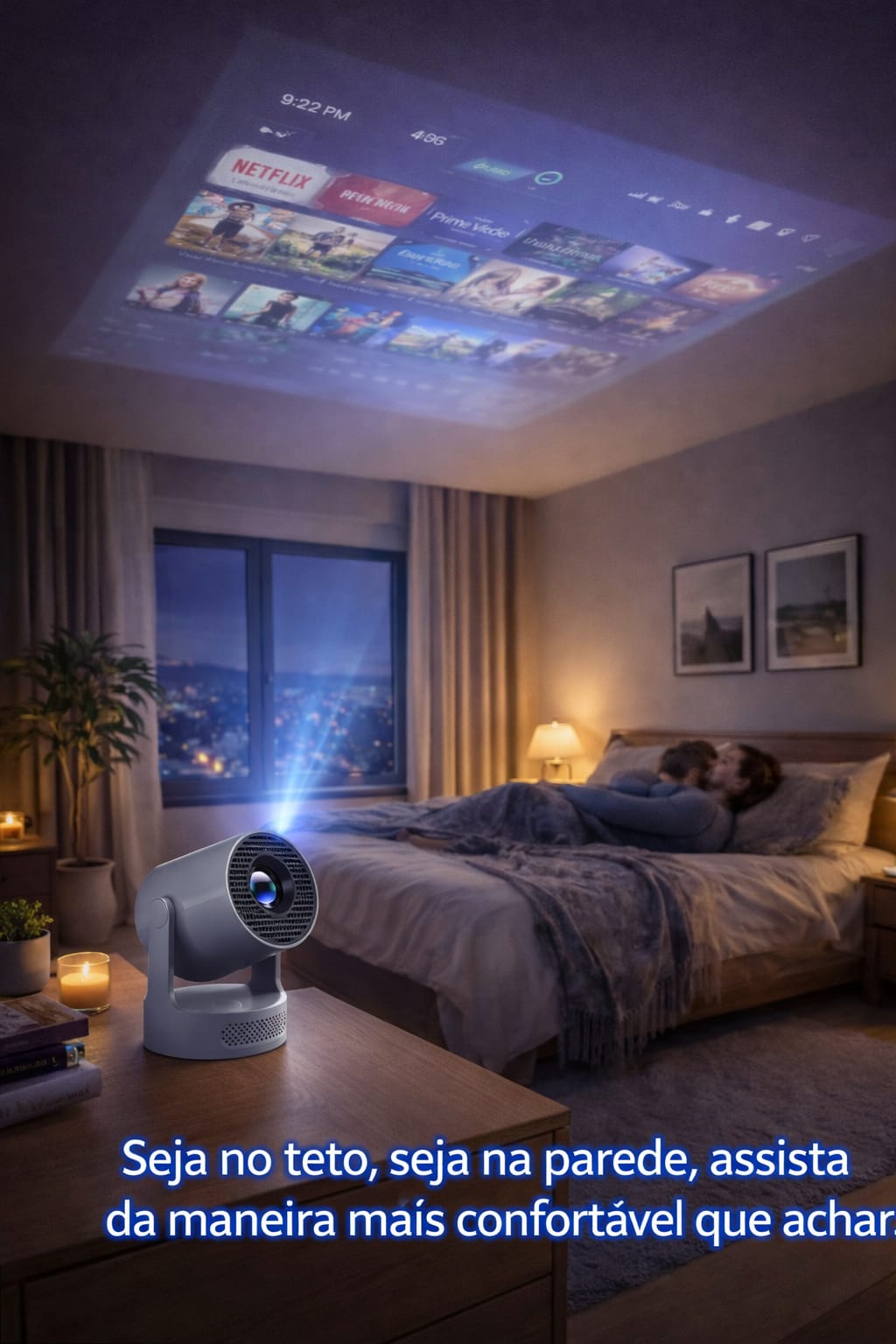Com base giratória de 180°, você pode assistir filmes deitado, sentado ou onde quiser. Ele se adapta ao ambiente e não o contrário, entregando conforto e praticidade incomparáveis.
