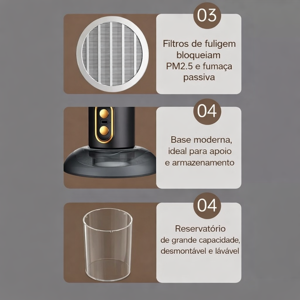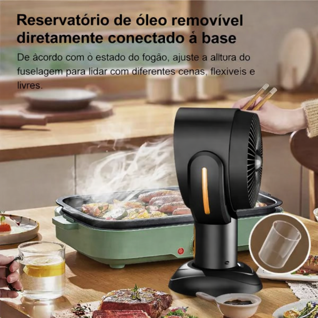 Elimine gordura, fumaça e odores na hora, mesmo sem coifa instalada.